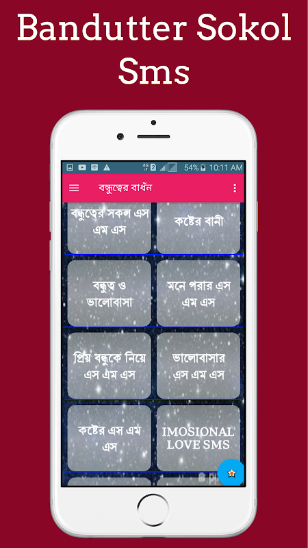 সবাইকে আন্তরিক ভাবে ধন্যবাদ। প্রথমেই আমার সালাম গ্রহন করবেন। আমাদের অ্যাপের মধ্যে আপনি বন্ধুত্বের সকল এসএমএস খুব সহজেই পেয়ে যাবেন। প্রতিটি এস এম এস "Share""COPY""Send" এই তিনটি পর্যায়ে আপনি আপনার মনের মানুষকে পাঠাতে পারবেন।শুধু আপনাদের সুবিদার্থে আমার অক্লান্ত পরিশ্রমের ফলশ্রুতিতে এই অ্যাপটি বানানো।