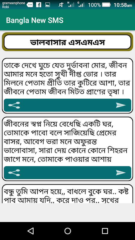 আমাদের আয়োজন বাংলা আধুনিক এসএমএস/Bangla Adunik Sms নামে একটি অ্যাপ যা আপনাদের আত্বীয় স্বজন ও বন্ধু বান্ধবদের সাথে ভাল ভাল Sms পাঠিয়ে তাদের মন জয় করতে পারবেন বলে আমি মনে করি । বাংলা এসএমএস-Bangla SMS অ্যাপটিতে