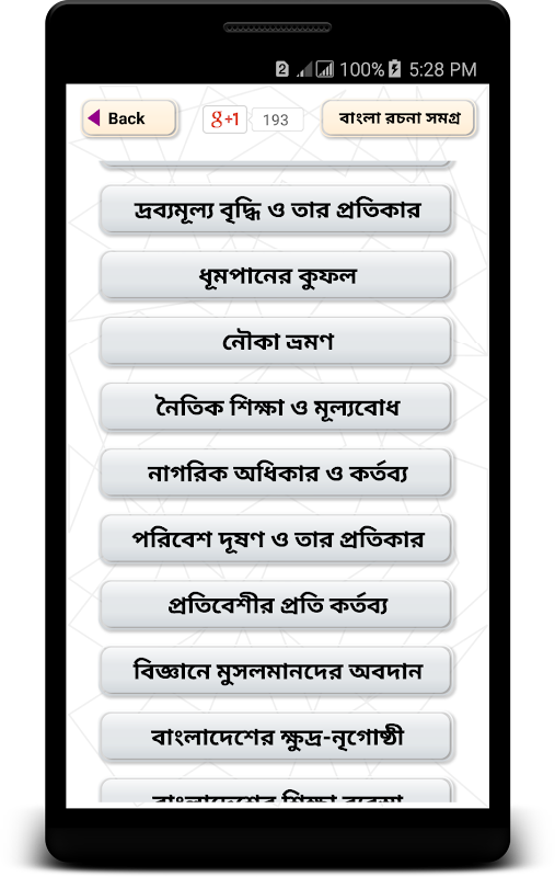 বাংলা রচনা সমগ্র ( Bangla Rochona somogro ) is an educational bangla apps. This is a bangla essay book for all students of school, collage and university. You will find a good type of essay collection in this application. This is a kind of bengali book and small contribution of bangla education.