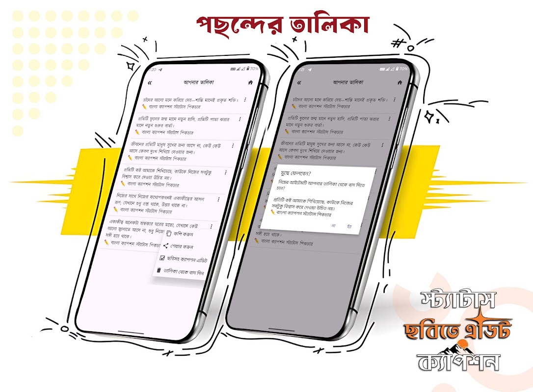 🔹 পছন্দের তালিকা – আপনার পছন্দের স্ট্যাটাস এর তৈরি করতে পারেন।