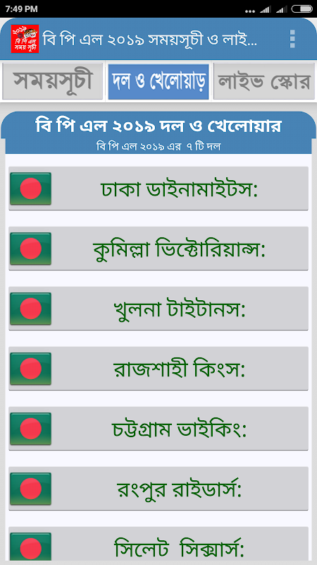 ข้อมูล বি পি এল ২০১৯ সময়সূচী ও লাইভ স্কোর APK