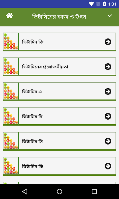 คุณสามารถค้นหาแอปนี้โดยใช้คำหลักเหล่านั้นใน Google Play: งานวิตามินและแหล่งที่มาประเภทของวิตามินและฟังก์ชั่นของพวกเขาแหล่งวิตามินอาหารรายการวิตามินและแร่ธาตุคู่มือวิตามินในบังคลาเทศแนวทางวิตามินบางลาคู่มือวิตามินบางลาบางลาวิตามินแผนภูมิ , Bangla วิตามินคู่มือ