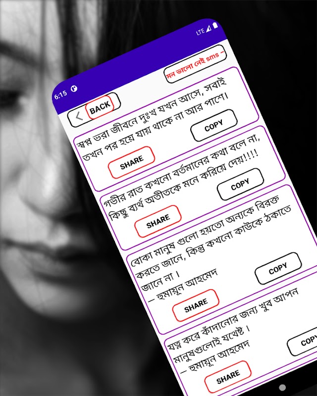 খারাপের উক্তি ও ছোট পোস্ট দেয়া হলো । আমাদের অনেক সময় মন খারাপ থাকে আমরা চাই সেই মন খারপের অনুভূতি টি আমাদের বন্ধুদের সাথে শেয়ার করতে যাতে করে আমাদের মন হালকা হয় আর একটু খুশী হতে পারি । এই এপের দুঃখের উক্তি গুলো পড়লে এবং বন্ধুদের সাথে শেয়ার করলে আশাকরি মন ভালো হতে সাহায্য করবে । চলুন দেখা যাক কি কি উক্তি নিয়ে আমাদের আজকের এই แอป