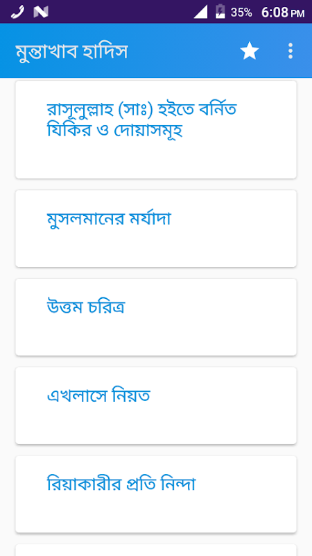 Muntakhab Hadith หนังสือหะดีษเป็นที่นิยมอย่างมากในประเทศ subahaha . การอ้างอิงถึงสุนัตทุกเล่มในหนังสือหะดีษถูกนำเสนอในลักษณะที่สวยงามมาก หนังสือหลายเล่มของ Muntakhab Hadith ได้รับการรวบรวมแล้วถูกต้อง Sahih Hadith ได้รับการรวบรวมแล้ว ดังนั้นหนังสือของสุนัตนี้ได้รับความนิยมจากชาวมุสลิม แอปสับนี้ประกอบด้วย: