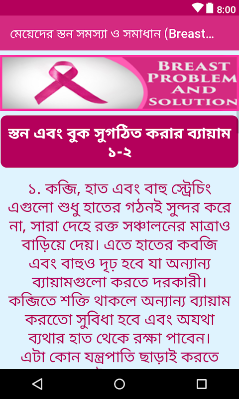স্তন সমস্যা সমাধানের যাবতীয় টিপস এই অ্যাপ এ দেওয়া আছে ।