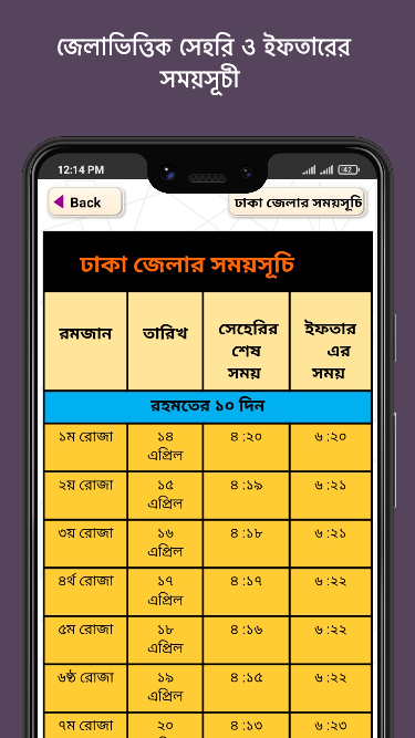 রমজানের ক্যালেন্ডার ২০২১ তথা রমজানের সময়সূচি ২০২১ নিয়ে আমাদের এই অ্যাপ । এখান থেকে খুব সহজেই আপনি রমজানের সময়সুচি জানতে পারবেন । রমজানের অনেক রমজানের ফজিলত সম্পর্কেও জানতে পারবেন। এছাড়াও রয়েছে -