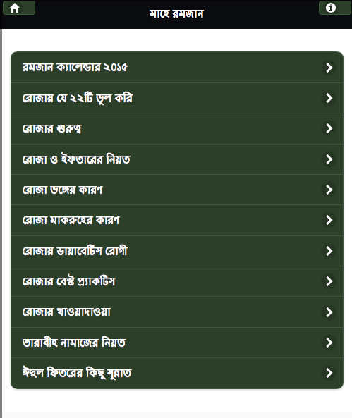 আশা করি এই অ্যাপটি পবিত্র রমজানে বিভিন্ন মাস্লা মাসায়েল মানতে ও জানতে অনেক সহায়তা করবে। আর রোজার ক্যালেন্ডারটি সঠিক সময় অনুযায়ী রোজা রাখতে (সেহরির সময় এবং ইফতারের সময়) সাহায্য করবে।