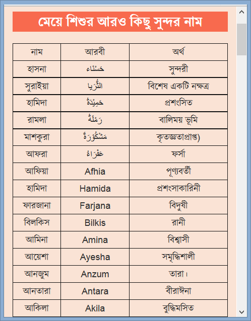 ১৮। মেয়ে শিশুর আরও কিছু সুন্দর নাম