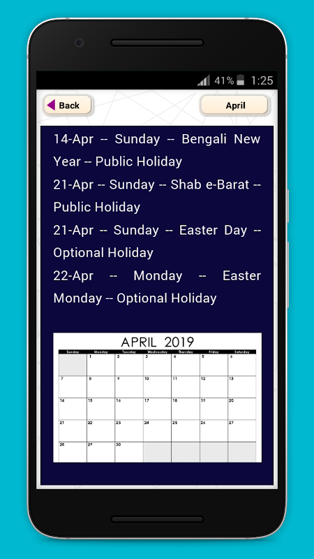 ข้อมูล সরকারি ছুটিসহ ইংরেজি বর্ষ ক্যালেন্ডার ২০১৯ APK