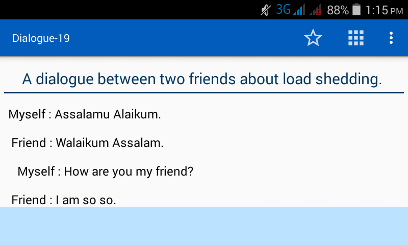 স্পোকেন ইংলিশ ডায়লগ অ্যাপসিতে আপনি ইংরেজি ডায়লগ গুলো পড়তে পারবেন।