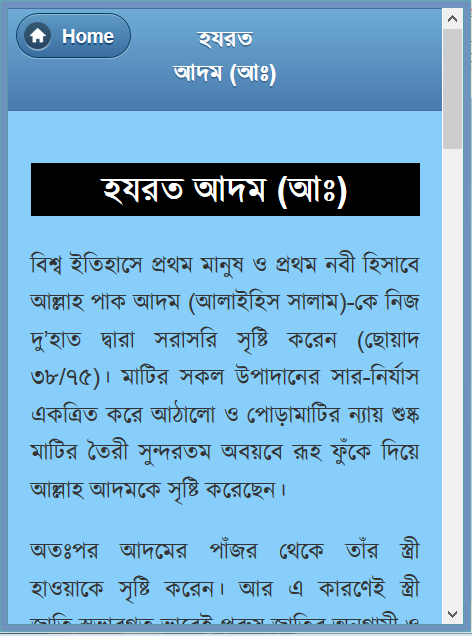 มนุษย์เดิมและพระศาสดาอาดัม (สันติภาพพวกเขา) โปรแกรมที่พัฒนาด้วย hayecheekhane adamake อดัม (ii) การสร้างรายละเอียดข้อมูลจากทุกทางจนตายของเรื่อง rayecheete ของการสร้างอาดัมที่กราบตีความของอดัมลักษณะเหนือกว่า rasuladera ศาสดาสัญญาสัญญาสำหรับที่ผ่านมาเป็นเรื่องราวของลูกหลานของอาดัม เขาเชื่อในเตาฮีดและเขาสอนลูก ๆ ของเขา คำแนะนำ Sbarupaadama สำหรับมนุษย์ที่จะเรียนรู้เกี่ยวกับมันในแอปได้อย่างถูกต้องเหมาะสม