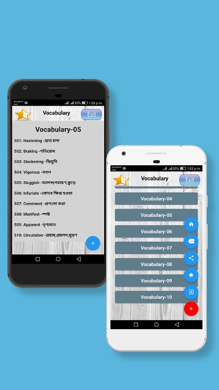 Vocabulary bangla to english is a helping app for those who want want to learn spoken bangla to english. It’s like a english to bangla dictionary app. Like english to bengali dictionary this vocabulary app will help you to learn english vocabulary bangla. You will find so many english to bangla dictionary free that works offline....