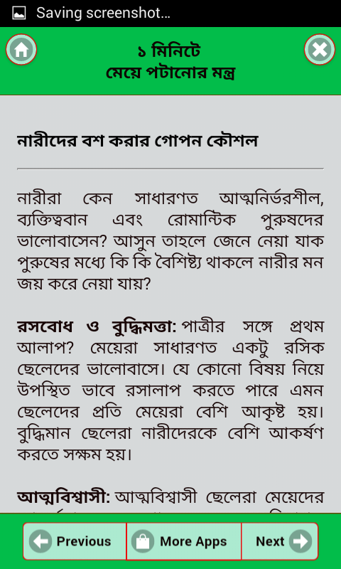 সব মানুষই স্বপ্ন দেখে যে মেয়েরা তাঁর জন্য পাগল হয়ে থাকুক এবং ডজন খানিক মেয়ে সব সময় তাঁর পিছিনে ঘুরুক কিন্তু মেয়ে পাগল করার সঠিক উপায় না জানার কারনে তা অনেক সময় হয়ে উঠে না। ১ মিনিটে মেয়ে পটানোর মন্ত্র অ্যাপ এ আমরা এমন কিছু জাদুকরী টিপস এবং জাদুটোনা যা অনুস্মরণ করলে যে কোন মেয়ে নিমিষেই আপনার জন্য পাগল হয়ে যাবে। আমাদের মেয়ে পটানোর উপায়গুলো খুবই কার্যকরী এবং এর ফলাফল প্রমাণিত। এই জাদু এবং টিপস ব্যাবহার করলে যে কোন মেয়ে ১ মিনিটের মধ্যেই আপনার জন্য পাগল হয়ে যাবে। আপনার কাছে শুনে হাসি পেতে পারে কিন্তু আমরা বলব আপনি যদি সত্যি কোন মেয়েকে পটাতে চান বা কোন মেয়েকে আপনার জন্য পাগল করতে চান তাহলে আমাদের অ্যাপটি অনুস্মরণ করুন দেখবেন নিমিষেই মেয়েরা আপনার প্রেমে পাগল হয়ে যাবে।