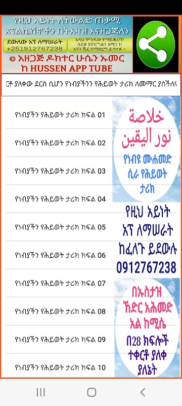 - ในทำนองเดียวกัน หากคุณต้องการสร้างหนังสือ tafsir และ muhadoros ที่ถูกทิ้งไว้โดยอาจารย์หลายคนของ Suna ในรูปแบบของแอปพลิเคชัน และอัปโหลดไปยัง Playstore โปรดติดต่อเราที่หมายเลขโทรศัพท์นี้ +251912768238