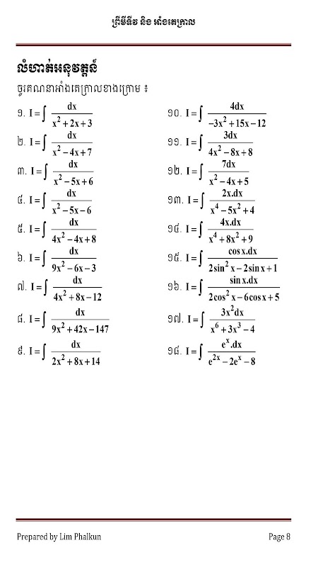 នេះគឺជាកម្មវិធីទាក់ទងនិងគណិតវិទ្យា ជាសៀវភៅព្រីមីទីវ និង អាំងតេក្រាល ថ្នាក់ទី១២ ដែលបានរៀបចំឡើងជាមួយទូរស័ព្ទ