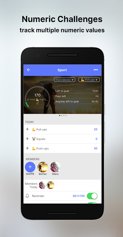 เช่น: วิ่ง 100 กม. ใน 30 วัน, ความท้าทายในการวิดพื้น 1,000 ครั้ง จากนั้นคุณสามารถติดตามได้ว่าคุณเข้าใกล้เป้าหมายนิสัยของคุณมากแค่ไหน