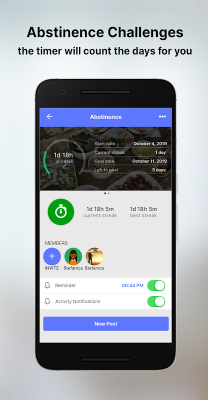 เช่น. คุณไม่จำเป็นต้องเช็คอินทุกวันที่คุณไม่ดื่มสูบบุหรี่ ฯลฯ เพียงแค่เริ่มเคาน์เตอร์งดเว้น