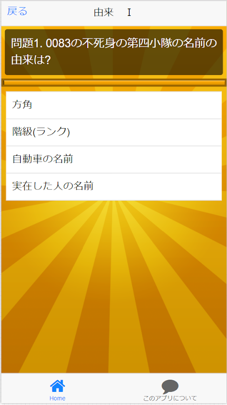 由来と語源に関するクイズアプリです。普段使われている言葉の語源に関しての問題です。また、地域や現在使われている名前の由来に関してのクイズです。完全無料