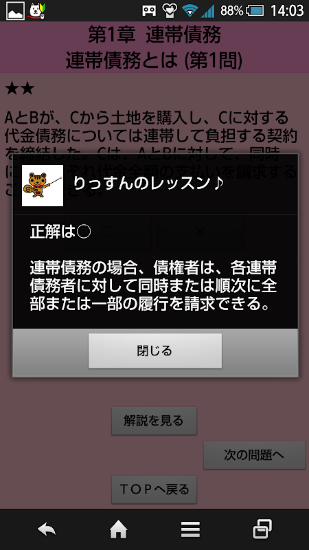 また、問題のすべての解説を読むと、テキストを読むのと同じになるように体系建てて、丁寧な解説を加えています。これによりいきなり過去問に挑戦できるようにしてあります。このアプリを解くだけで、合格最低点を効率的に上回るように設定してあります。