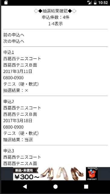 候補日の施設の現在の抽選申込の状況(申込数)をリストアップする。