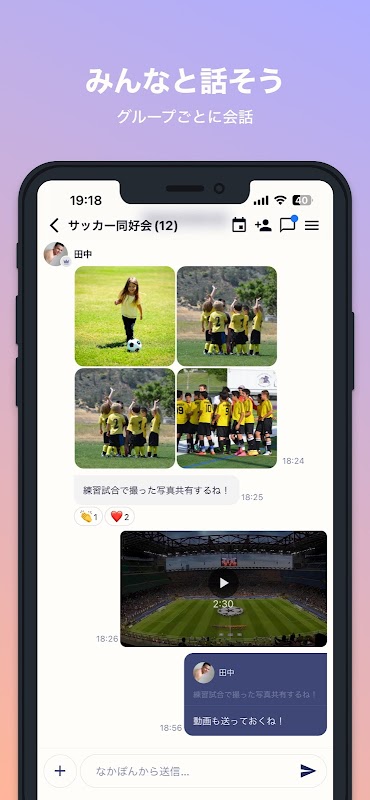 แอปการสื่อสารที่หลากหลายที่ครบครันด้วยฟังก์ชันที่จำเป็นสำหรับการจัดการกลุ่ม เช่น การสนทนา บันทึก ตารางเวลา งาน และการยืนยันการเข้าร่วม เช่น การติดต่อและจัดการแวดวงสังคมและกิจกรรมชมรม