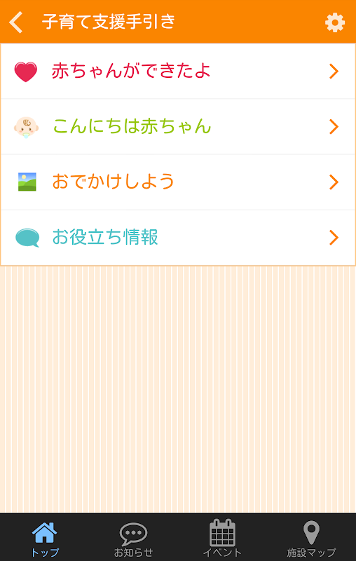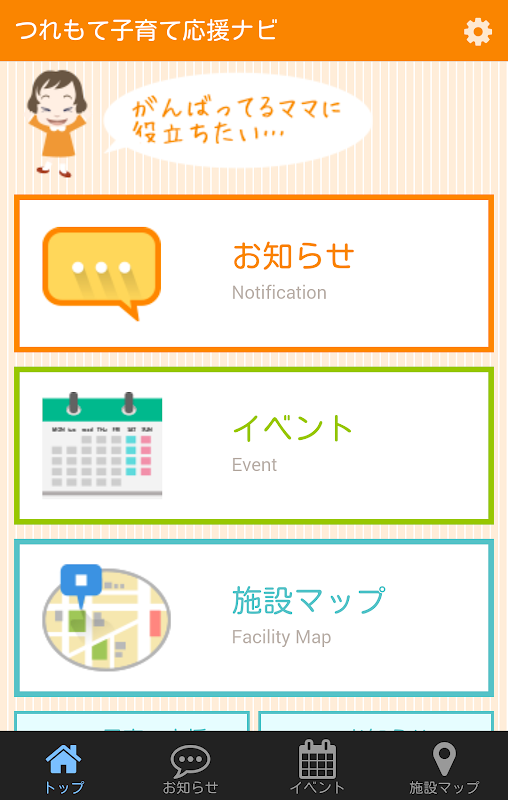 和歌山市の公式子育て支援アプリです。健診や予防接種をお知らせするプッシュ通知や、現在地から近隣の子育て支援施設を検索することができる機能があります。