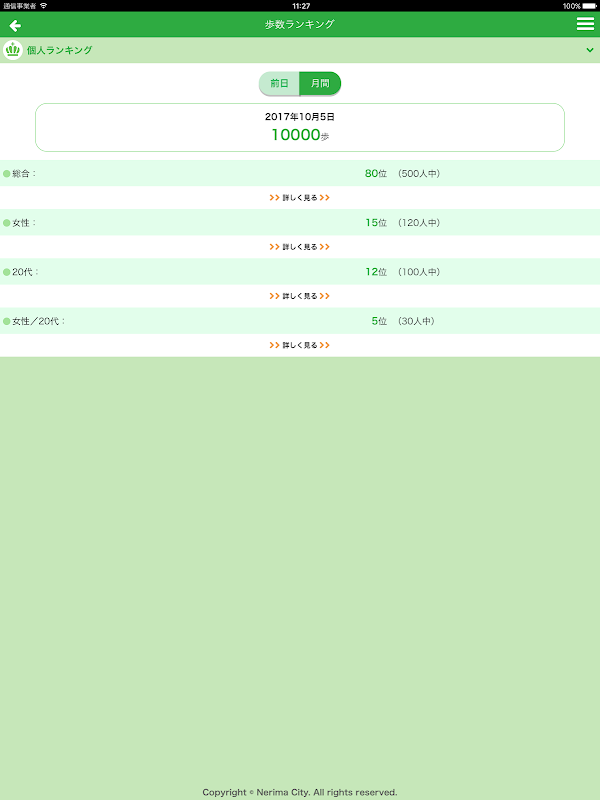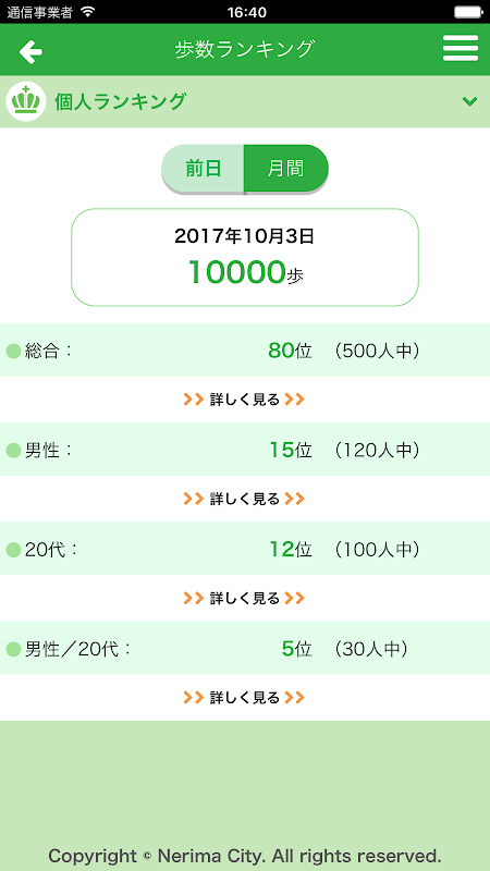 จะแสดงการจัดอันดับของจำนวนวันก่อนหน้าของขั้นตอนและเดือนสุดท้ายของจำนวนเสียงทั้งหมดของขั้นตอน นอกจากนี้เมื่อคุณลงทะเบียนเพศและปีดิบในการตั้งค่าของรายละเอียดที่คุณสามารถดูเพศและอายุเฉพาะการจัดอันดับ (ถ้าคุณมีชื่อเล่นที่ลงทะเบียน)