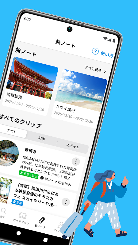 • ガイドブックや記事で見つけた「行ってみたい場所」「気になるお店」をワンタップでクリップ。