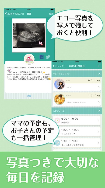 จากมุมมองของแม่ที่เผชิญกับเด็กแต่ละคนการตั้งครรภ์การคลอดและการเติบโตของเด็กที่ตามมาก็เกิดใหม่เป็นแอพเพื่อดูการสนับสนุนและการเติบโตในชีวิตประจำวัน