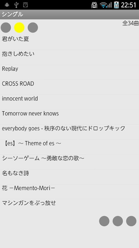 アプリ上部の3つの丸と下部の3つの丸で画面が切り替わります。