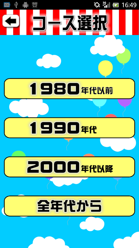 問題は全て、1980年代、1990年代、2000年代~など年代別に分かれており、様々な年齢層に対応しております。