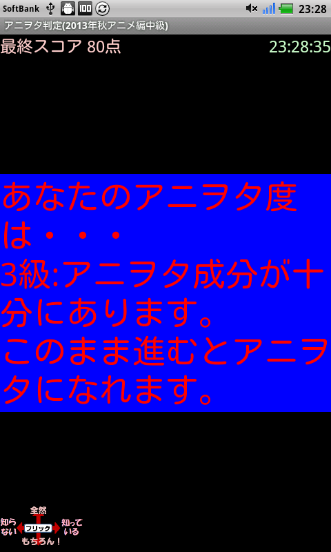 質問の正解も表示されますので、アニヲタを目指すときの参考にしてください。