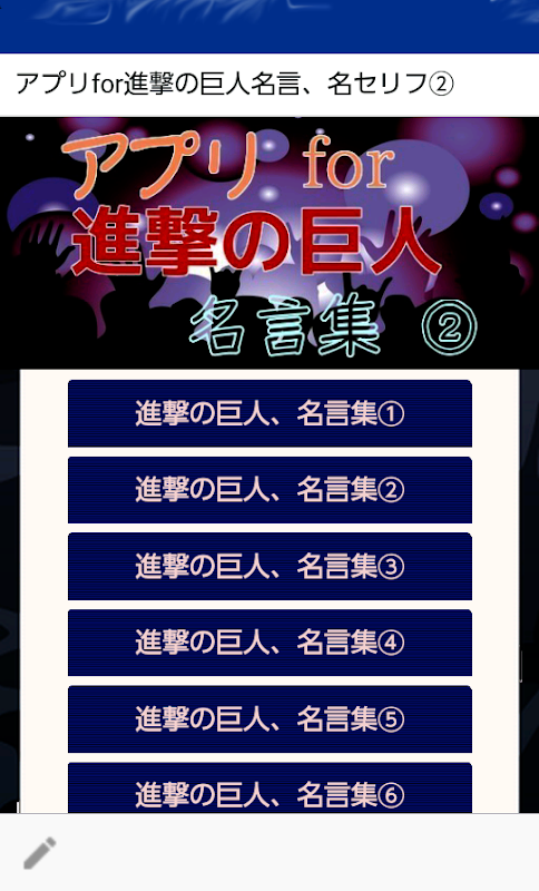 ข้อมูล アプリfor進撃の巨人名言、名セリフ②・・・エレン、ミカサ等巨人に立ち向かう少年少女のことば APK
