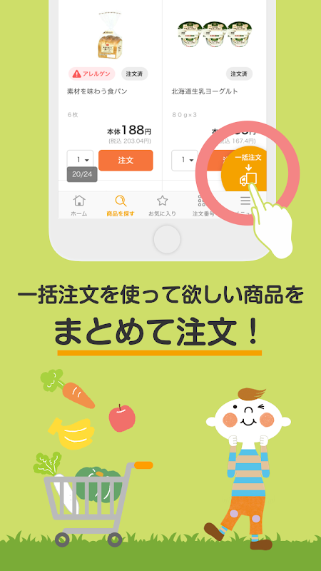 มีรายการมากกว่า 6,000 รายการตั้งแต่ส่วนผสมจนถึงของใช้ประจำวันและสินค้าเลี้ยงเด็ก มีผลิตภัณฑ์เชิงพาณิชย์และผลิตภัณฑ์ดั้งเดิมให้เลือกมากมาย แม้แต่ของหนักและเทอะทะก็มาถึงประตูหน้าทำให้การช้อปปิ้งง่ายขึ้น