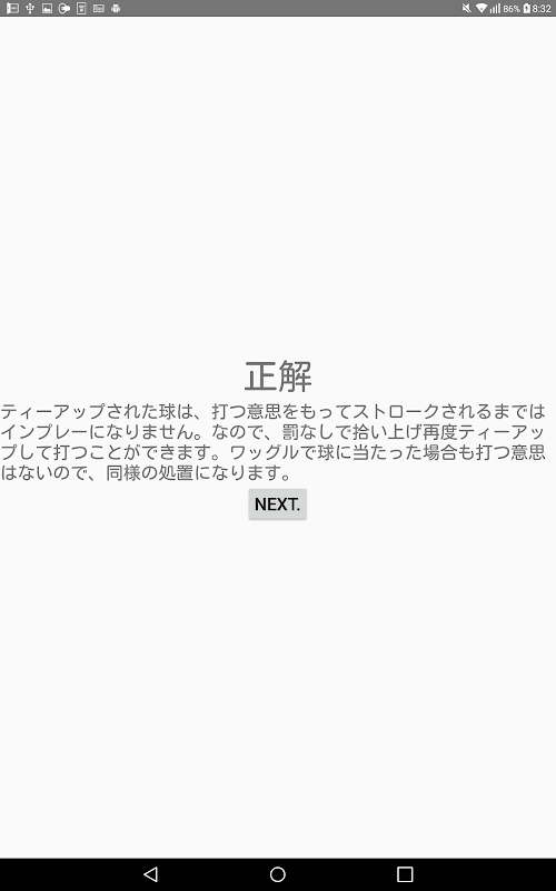 2016年度のゴルフ規則を元に、これからゴルフを始める人・始めたばかりの初心者の人に役立つ、必ず遭遇するありがちなシチュエーションをクイズ形式でルールを簡単に覚えられます。