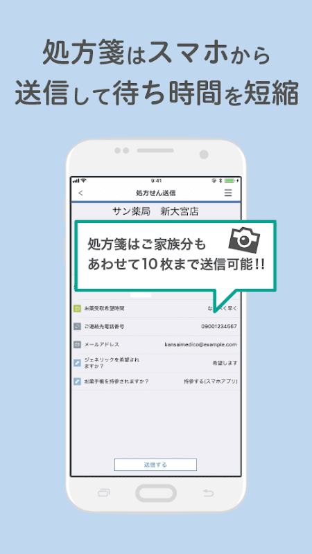 ถ่ายใบสั่งยาที่โรงพยาบาลหรือคลินิกโดยใช้ฟังก์ชันกล้องถ่ายรูปของแอปพลิเคชันและส่งไปที่ร้านขายยาที่คุณโปรดปรานของซาน