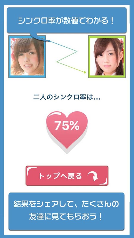 あなたは好きな人とどのくらい似ているかな!?話題の顔診断アプリがもっと強くなって戻って来た!自分では似てないって思っても、実はすっごくシンクロしてるかも?!