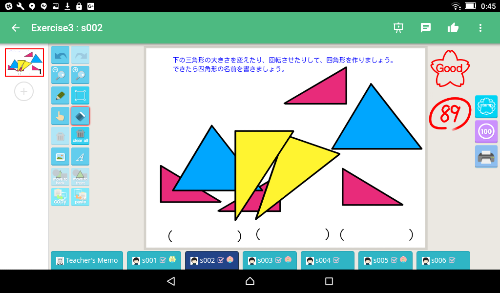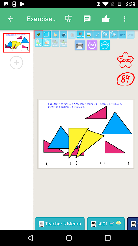 ที่ตั้งไว้ล่วงหน้าและความหลากหลายของวัสดุการเรียนการสอน, เพียงแค่อัปโหลดสื่อการสอนรูปแบบไฟล์ PDF ที่มีอยู่และรูปถ่ายของหรือสามารถเข้าใจสถานการณ์การเรียนรู้ของนักเรียนในเวลาจริง "แต่ละอื่น ๆ ได้เรียนรู้กับทุกคน" ด้วยการแบ่งปันคำตอบของนักเรียนในการเรียนรู้ คุณสามารถสร้างสภาพแวดล้อมที่ง่าย