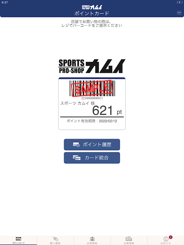 1. แอปนี้พิสูจน์ว่าคุณเป็นสมาชิกของคะแนน Sports Kamui และคุณสามารถใช้คะแนนได้ที่ร้าน Sports Kamui แต่ละแห่ง (ยกเว้นบางร้าน)