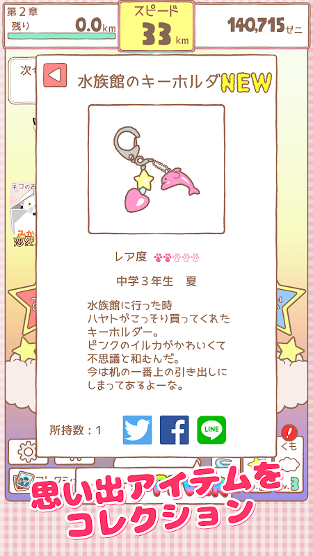 たまに出現する「宝石箱」はネコとの思い出の品をコレクションできます。