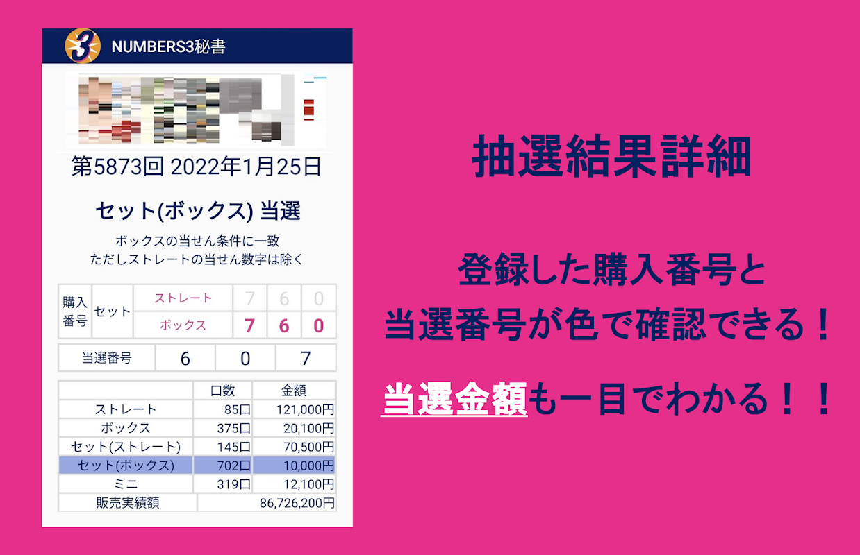 เกี่ยวกับ ナンバーズ3の結果通知&自動チェック NUMBERS3秘書