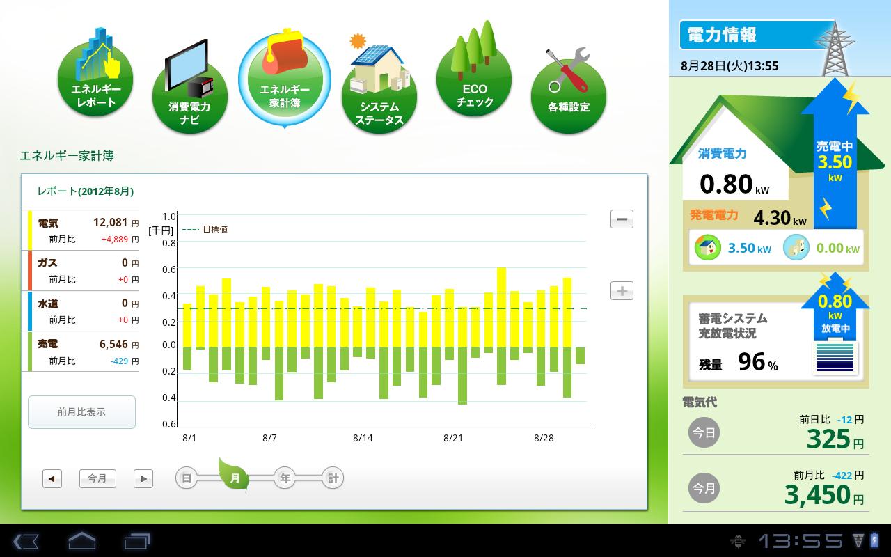 ホームEMS「ハウスマイルナビィ」は、お客様宅内のネットワークに接続したお手持ちのAndroidタブレットなどを使用し、エネルギーの見える化を提供します。