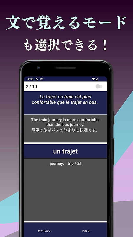 เป็นแอปพลิเคชั่นหนังสือคำศัพท์ที่มีคำศัพท์ 3,600 คำครอบคลุมภาษาฝรั่งเศสในชีวิตประจำวัน