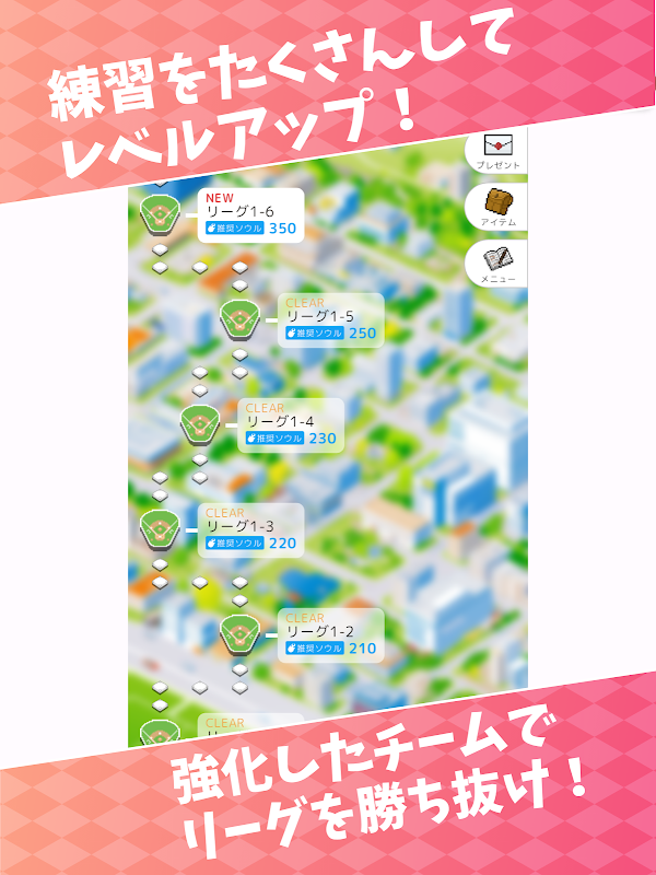 สร้างทีมเบสบอลของคุณเองด้วยการสอดแนมและพัฒนาตัวละครในขณะที่คุณก้าวหน้าผ่าน World League!