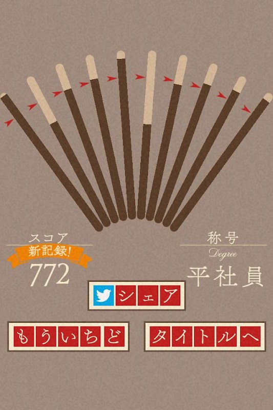 チョコをキめる画面では, 画面をタッチしている間, お菓子の棒にチョコをキめていきます