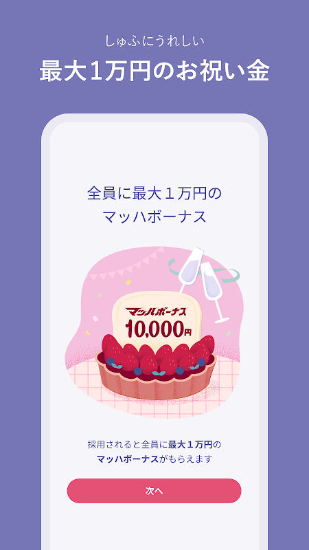 豊富な求人から自分に合ったパート/アルバイトを探せて、しかもお得にお祝い金が貰える主婦/主夫向けのパート/バイト/アルバイトアプリはマッハバイトしゅふ。