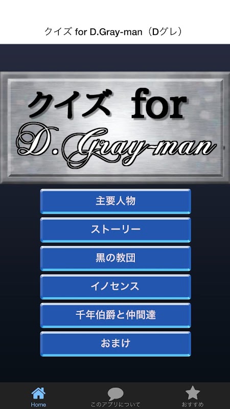 問題は主要人物、ストーリー、黒の教団、イノセンス、千年伯爵と仲間達、おまけで構成されています。