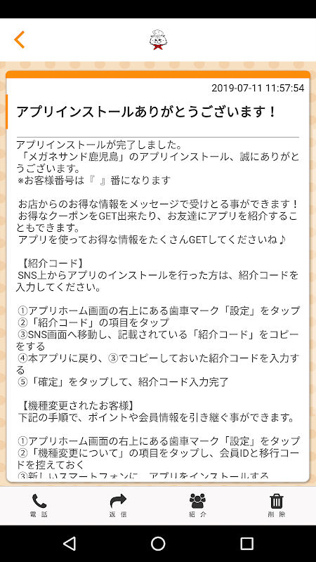 メガネサンドのアプリをSNSを通じてお友達に紹介する事ができます。
