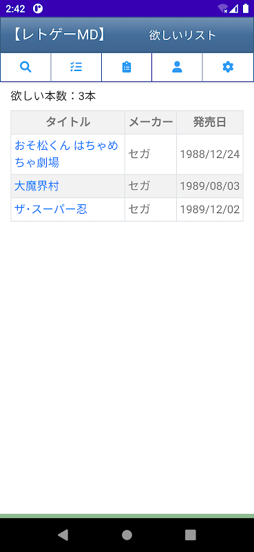 レトロゲームを管理するアプリMD編 รุ่นเก่า