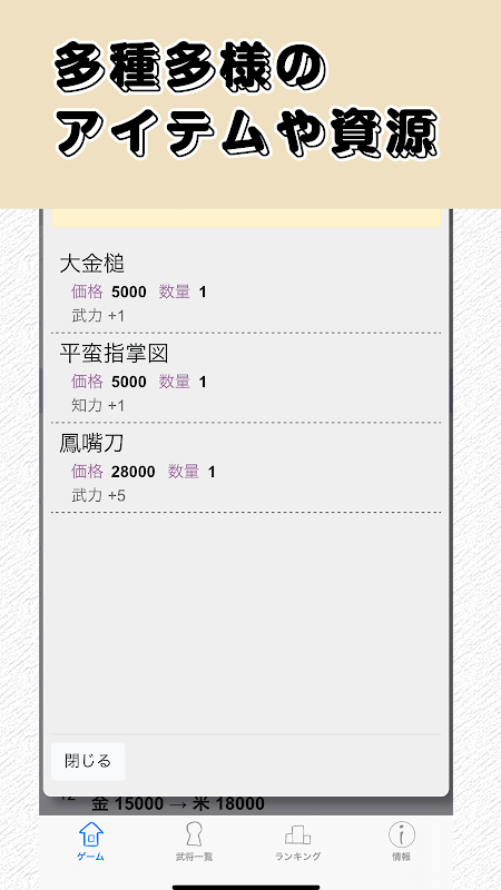 毎日コマンドを入力して、内政や戦争をして統一を目指そう!